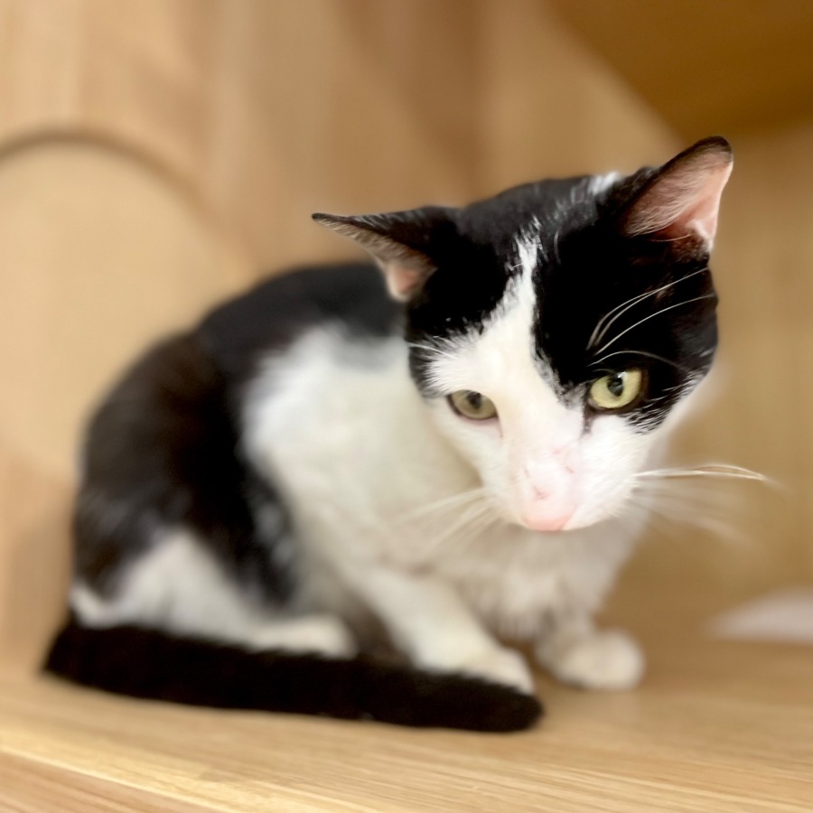 I am a domestic shorthair with what is described as a tuxedo coat. Tuxedo coated cats have unique markings, making it easy to identify. It certainly does make me look smart.
