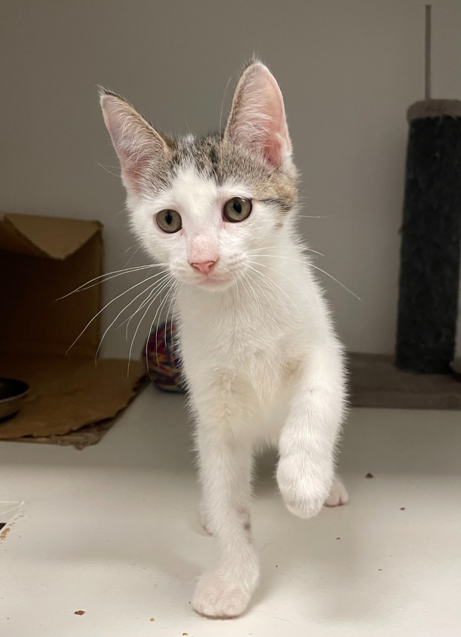 Jacob is a charming 3-month-old kitten with short fur and striking white and brown tabby patches. He’s a talkative little boy who always has something to say, adding personality to any home. Jacob came to the shelter as part of an emergency intake after his mum fell ill, but she did an amazing job raising him and his siblings.