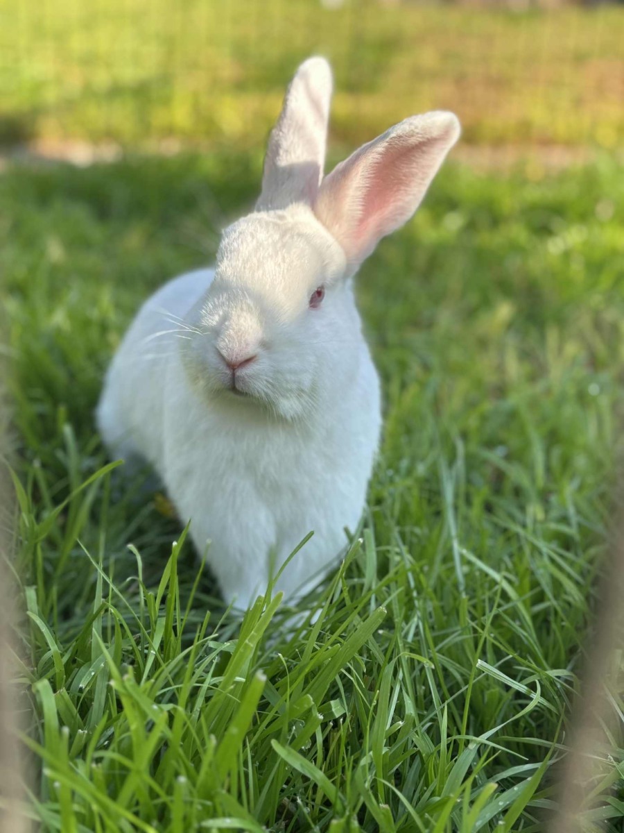 Meet Comet, a beautiful white bunny with stunning red eyes that capture the attention and hearts of everyone who meets him. This gorgeous rabbit is the epitome of curiosity and adventure, ready to leap into new explorations with joy and excitement.