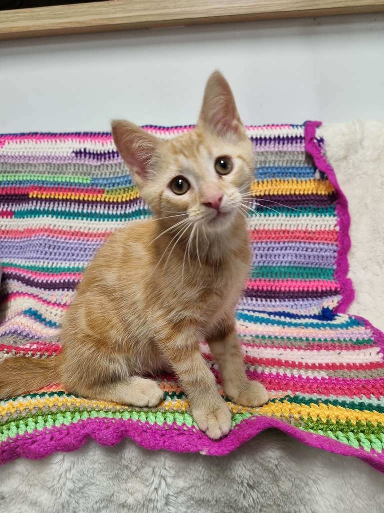 Apricot: Just like the sweet fruit she's named after, Apricot is a chatterbox! This curious kitten loves to "talk" and tell you all about her day. She's super affectionate and just as much of a velcro kitten as her sister Lychee, but Apricot's got a little extra flair with her vocalizations. Whether she's meowing for attention or chattering away as she plays, Apricot will keep you entertained with her playful spirit and her love for conversation.