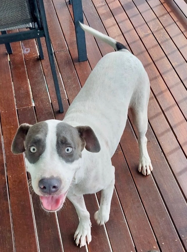 Snowy has had a hard start to life, but is absolutely loving being in a home and getting all the love he can soak up. A fun and boisterous puppy he will bring you joy and happiness as your new family member.