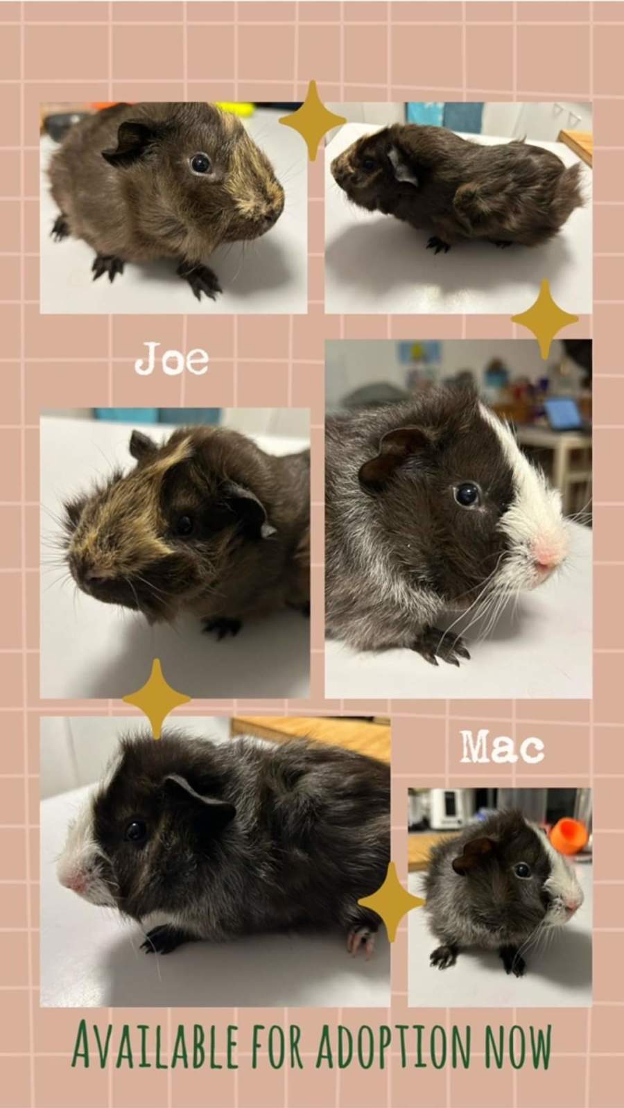 If you are interested in adopting these guinea pigs, please fill out the adoption form by following the link below.