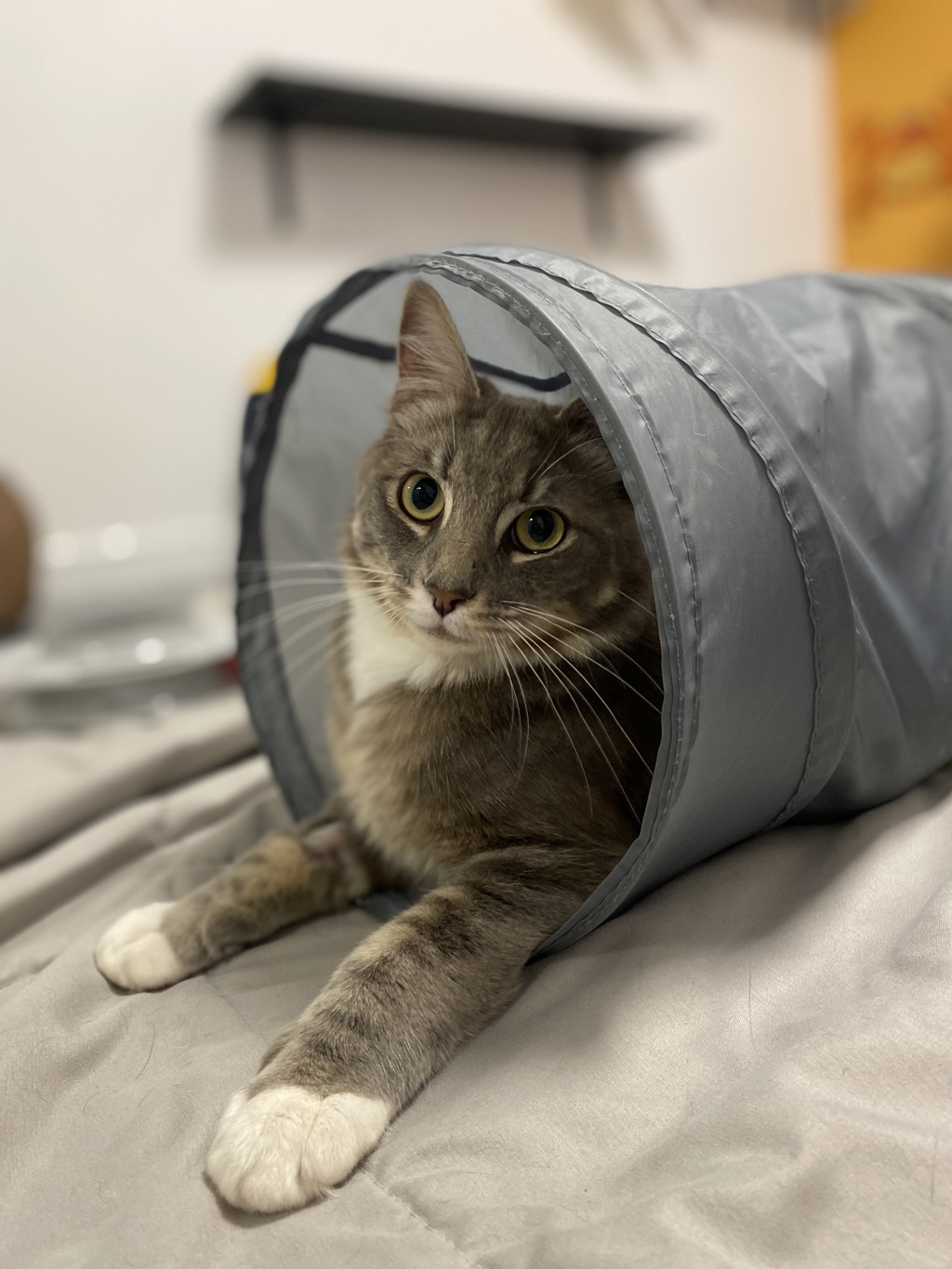 I love cuddles and belly rubs, and I'll happily curl up with you for a nap or some purring. But I'm also full of energy and love to chase toys and pounce on anything that moves - I'm a big fan of playtime! I get along great with other cats and dogs, so I'd be happy to join a home with furry friends.