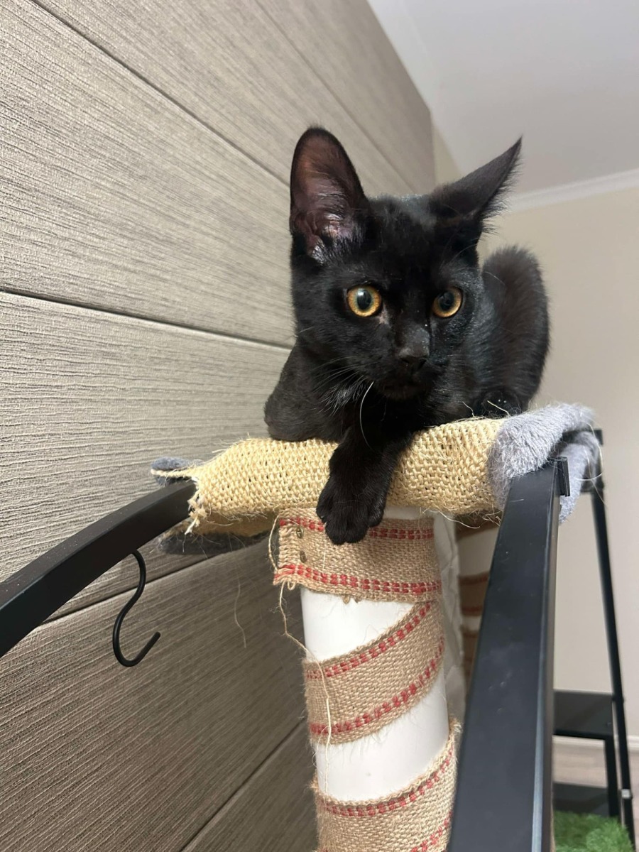 I am Gomez, a dashing, daring, and delightfully unique kitten with three magnificent legs that carry me on grand adventures through this curious world. Some may see my missing limb as a challenge, but I assure you, it is merely an opportunity to intrigue. After all, life is a grand stage, and I perform with flair, bounding through your halls like a shadowy specter of elegance and charm.