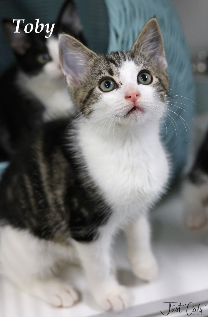 Meet Toby! This 10-week-old bundle of joy was lovingly raised by his mum, Pippi, alongside his playful siblings. Full of energy and curiosity, this sweet little kitten adores playing chase, exploring new toys, and cuddling up after a big day of adventures. Social and friendly, he thrives on attention and would make a perfect companion for a loving home.