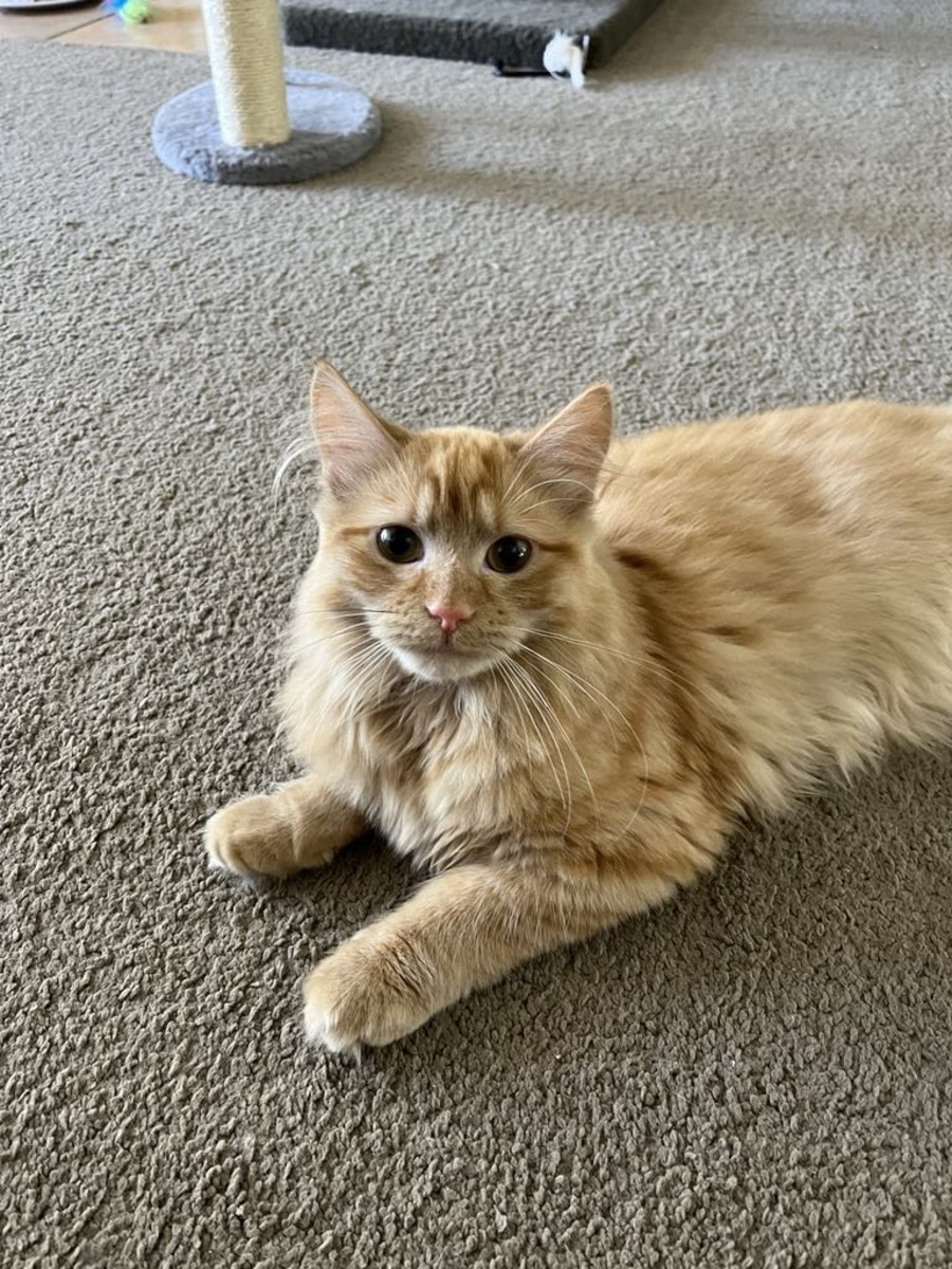 Cointreau is a 9 month old male long-hair kitten with light ginger fur and matching eye colour: clever! He has a lustrous mane of floof to warm himself and you this Winter, and Cointreau readily accepts care with a brush to keep his beautiful coat in good condition. Cointreau came into foster care with his three brothers: he was the most timid of his family, and has taken the longest to socialise in a home environment. Good things take time and his foster carers are pleased to say Cointreau’s well on his way! He’s shy at first and probably won’t be suitable for a super noisy household but he’s also ready to form a strong bond with you, and he loves nothing better than chilling on the couch getting all the pats. Cointreau plays with toys, loves squeezing himself into boxes and he adores the foster carer’s dog.