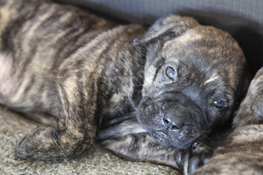 With Mum being a Dogue de Bordeaux and Dad a Cane Corso, this pup is a mix of two magnificent Mastiff breeds and will grow into a large-sized dog.