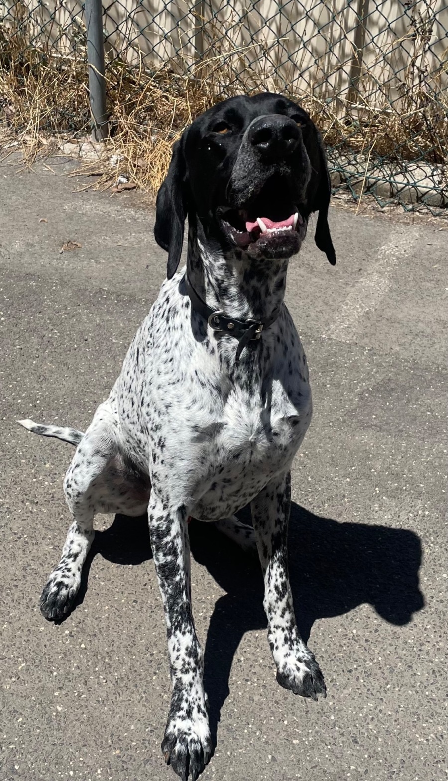 Meet Bentley, a striking and energetic 1.5-year-old German Shorthaired Pointer mix who is ready to become a cherished member of your family. Bentley's remarkable looks are matched only by his endearing personality. His social nature means he gets along well with fellow canines, and he enjoys bonding with his human friends.