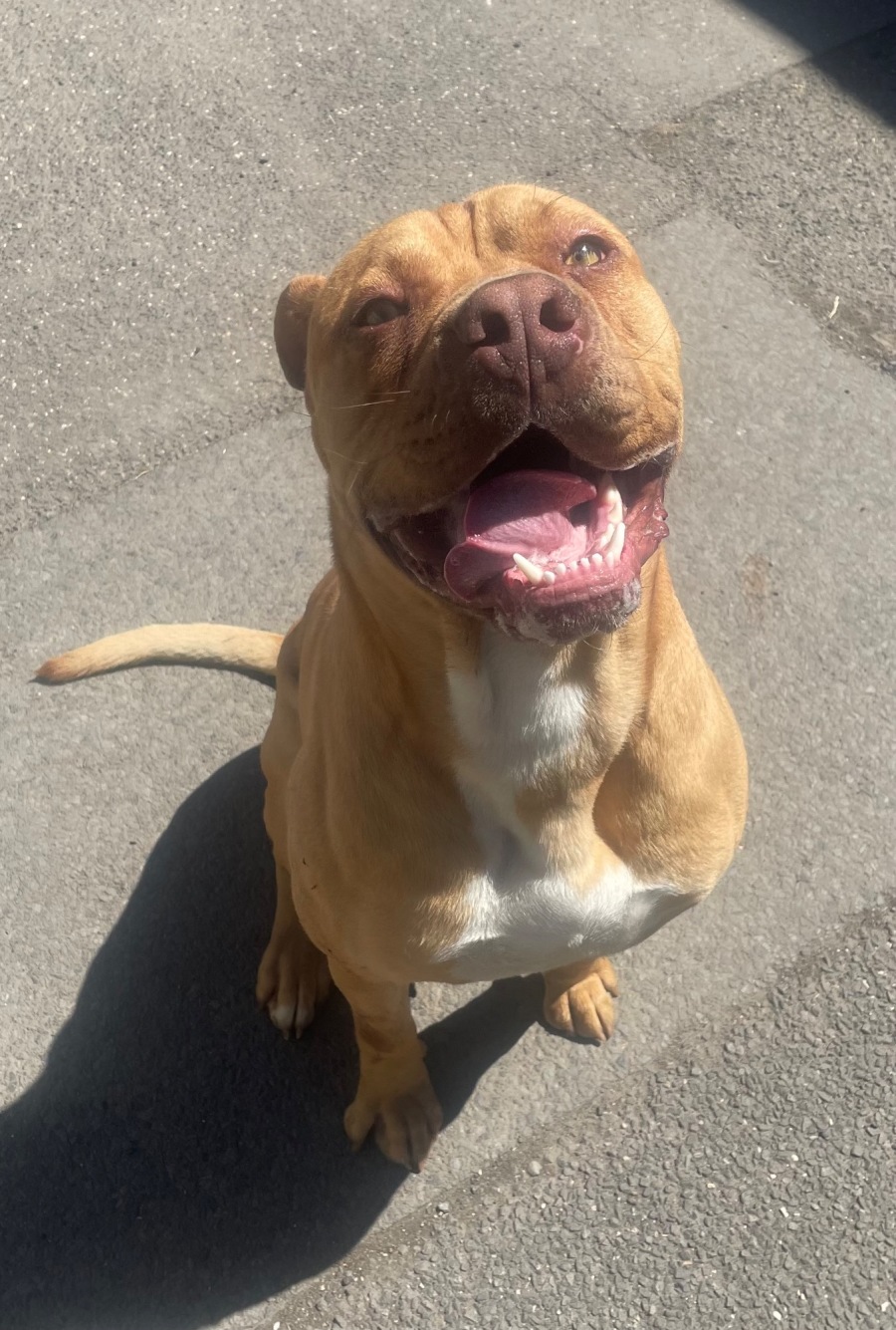 Sage is a bit of a powerhouse with a big heart, and he's on the lookout for a confident and experienced handler who can appreciate his strength and size while providing consistent guidance. Though he hasn't had extensive socialization, his friendliness shines through, and with the right support, he can truly thrive. He’s quite excitable and boisterous, his boundless energy is contagious, especially at playtime, which makes him a joy to watch.