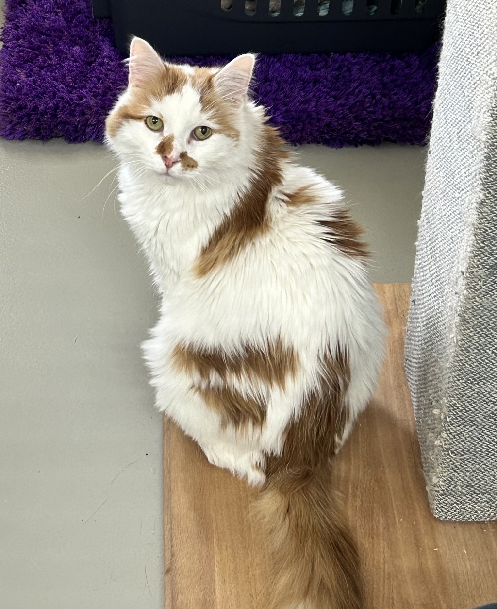 Meet Twistie, a handsome 12-year-old male cat with a striking white and ginger coat. Twistie is a domestic long hair who is initially shy but blossoms into a affectionate and loving companion once he gets to know you. Due to his glorious coat, Twistie requires regular grooming to remain tangle free.