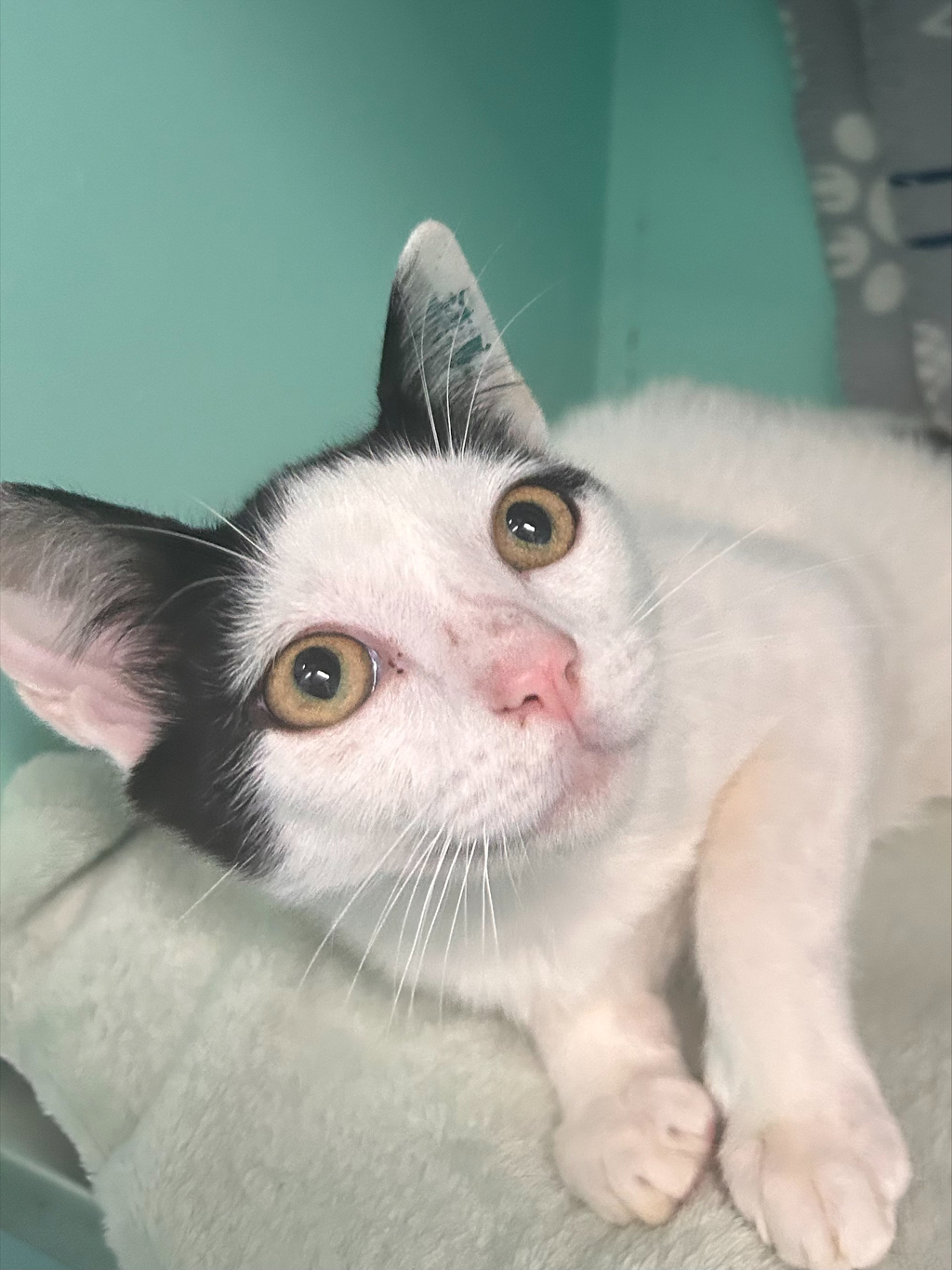 I'm quite the cuddle bug, if I do say so myself! My favorite time of day is when the shelter volunteers come to give me some love. I can't resist a good chin scratch or a warm lap to curl up in. My purr is the sweetest sound you'll ever hear, a promise of the love I have to give. Life in the shelter is okay, but I dream of a home where I can be the center of someone's world. I'm ready to give all my affection to my forever family. Adopt me, and I promise to fill your life with purrs, cuddles, and endless love!
