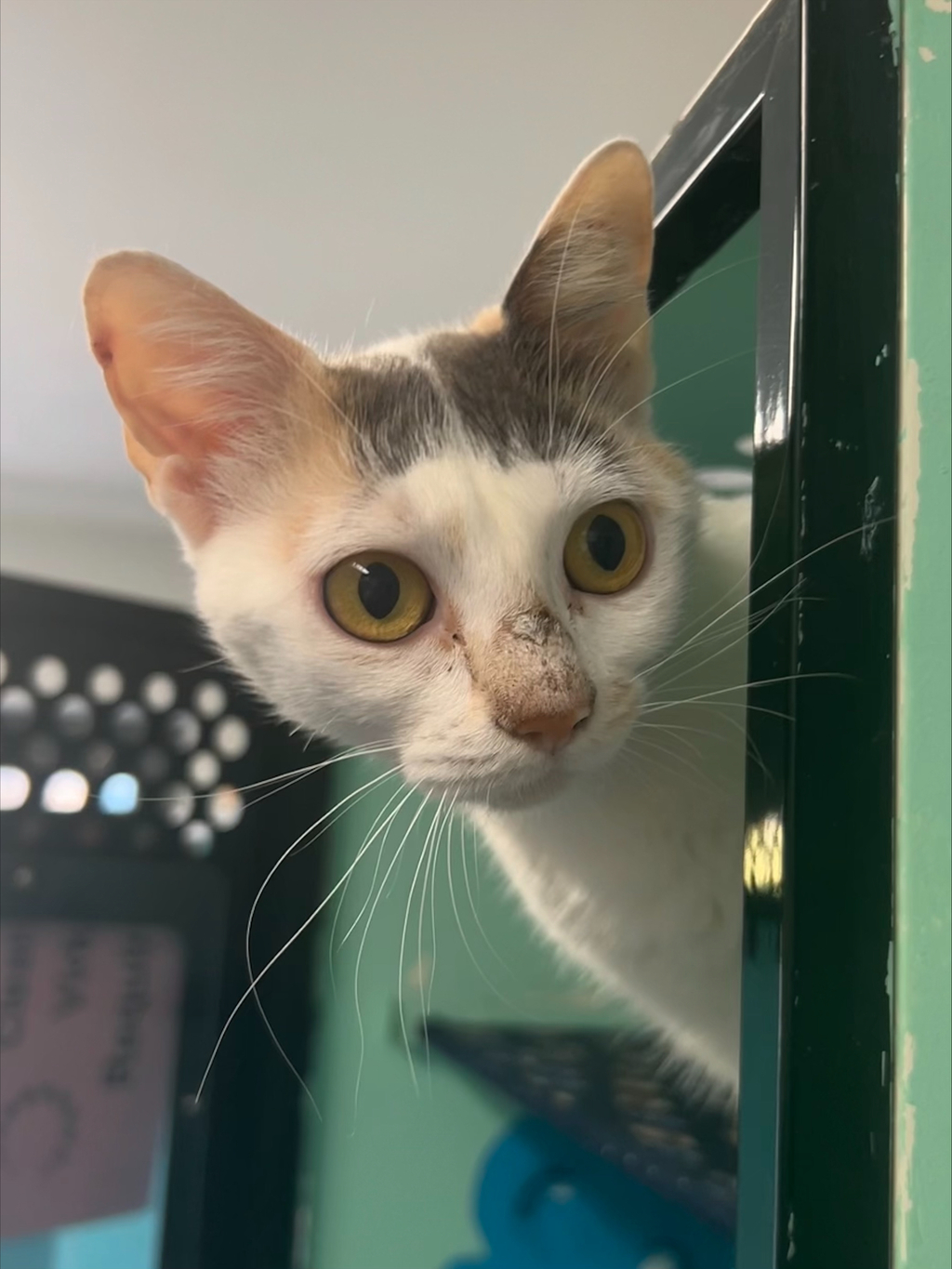I'm young, and I love to cuddle. My favorite pastime is hiding under warm, cozy blankets. It's my own little secret spot, a place where I can dream about chasing butterflies and playing with yarn. I'm known for my gentle purrs and soft nudges, my way of saying, 'I'm here for you.' I have a lot of love to give and I'm waiting for someone to share it with. Will you be my forever friend? Adopting me will bring a little joy to your everyday life.