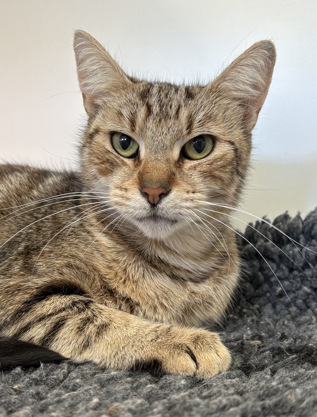 Mimi is about 18 months old and is all set to find a home. She's a very tidy lady who loves dinner time, soft fluffy beds and an endless supply of pats. She is very tolerant of other cats and is currently sharing her pen with Linda. A home with older kids would be better for her as she is a little shy when she meets new people and loud noises can be a bit scary for her. If you'd like to meet this super sweet girl we're open 7 days a week from 11.30am to 3.30pm.