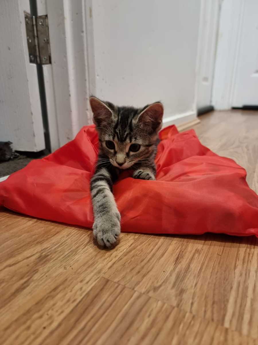 When he’s not busy on his little adventures, he loves winding down with cuddles and naps. One of his favourite spots to curl up? The laundry basket! He’s also got a playful side and enjoys sneaky attacks on your toes, so be prepared for some kitten mischief. If you’re looking for a fun, loving, and adventurous companion, Monty could be the perfect fit for your home!