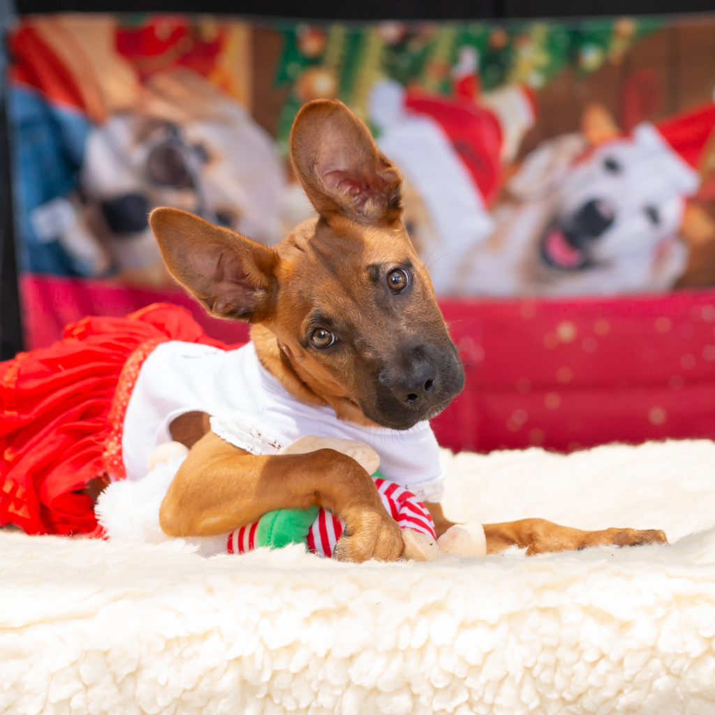 Meet Fennec, a 12-week-old German Shepherd x Rhodesian Ridgeback pup with the sweetest disposition and the most adorable oversized ears! Her unique look and those big ears earned her the name Fennec, inspired by the charming fennec fox.