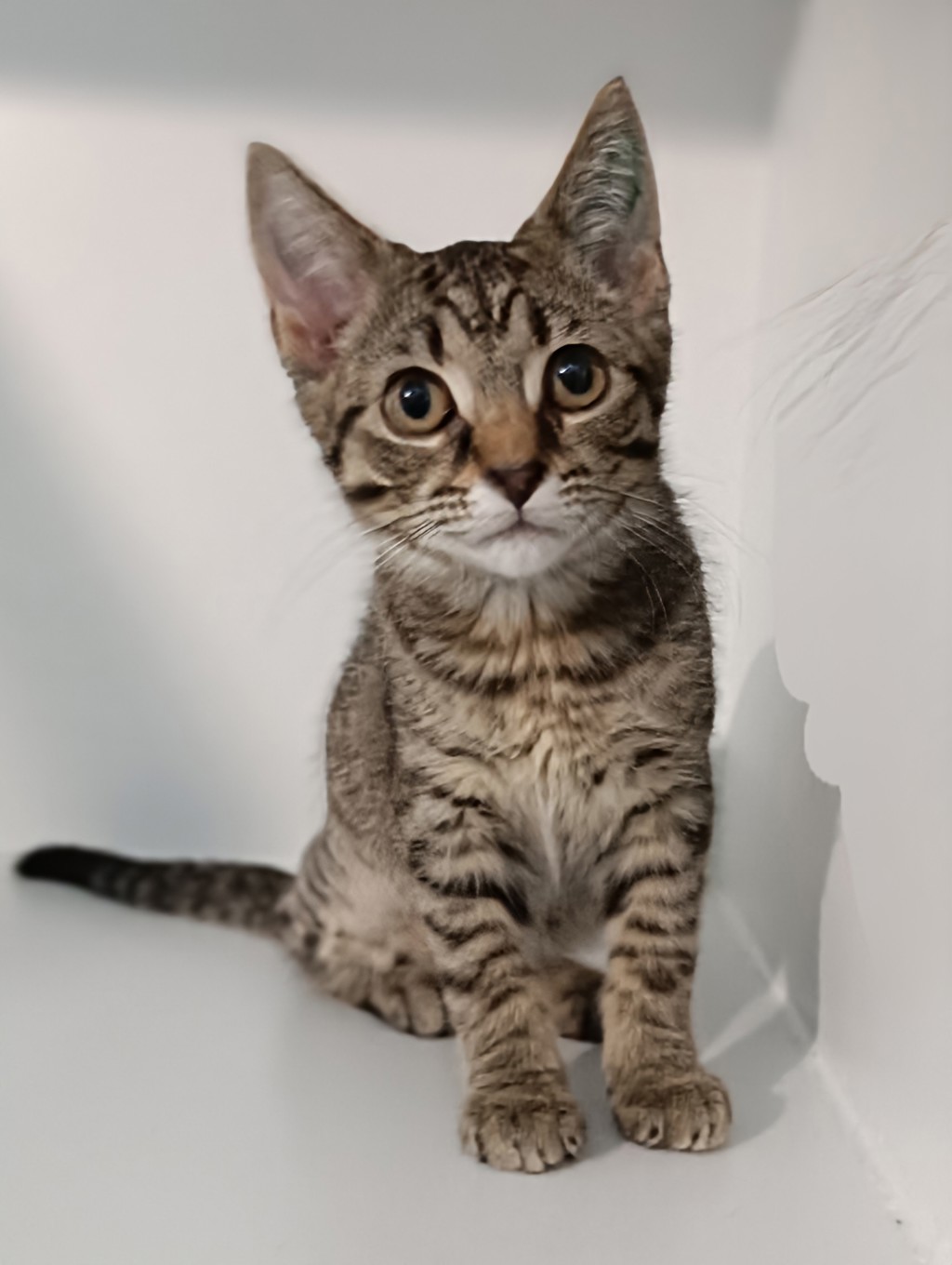 Ryker is a sweet tabby female kitten who has been through a lot in her short life. Coming from a cat colony, she can be shy at first but is slowly finding her confidence with each passing day. She loves to play with her siblings and is always up for a good game of chase or pounce. Ryker is slowly learning to trust humans and is looking for a patient and loving family who will help her continue to build her confidence.