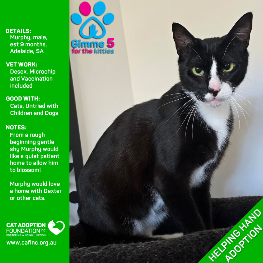 Donate to Murphy Helping Hand Adoption! at Cat Adoption Foundation Incorporated via Shout