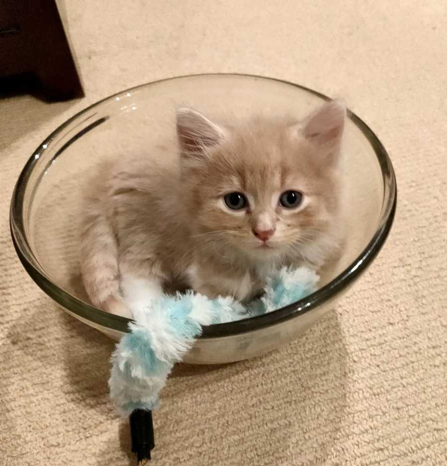 Introducing Bubbles, a charming champagne ginger boy with luxurious medium-length fur that perfectly matches his delightful personality. Bubbles is the ultimate cuddly companion, always ready to shower love and affection on those around him. He has a natural affinity for people, making him the ideal furry friend for anyone looking to add a bit of warmth to their home.