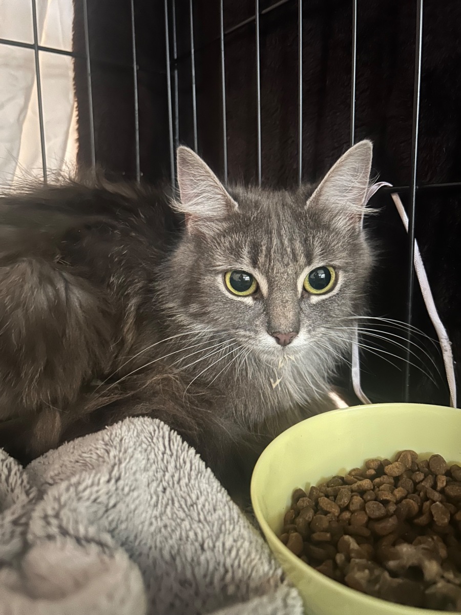 With her stunning long grey fur and sweet kitten charm, Hazel will always have a touch of that adorable, youthful energy, even as she matures. Once she feels comfortable, you’ll see her blossoming into a loving companion who will cherish your care.