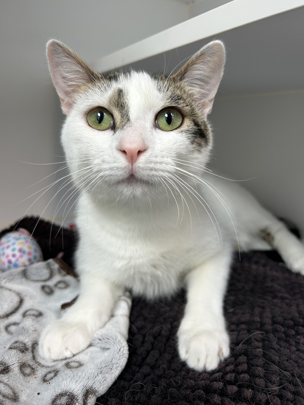Meet Tom Holland, a handsome white and tabby boy with a heart of gold and a playful spirit! While he may be a bit shy at first, he's simply waiting for the right person to help him come out of his shell. With patience, love, and understanding, you'll quickly see his confidence grow. Once he feels safe, Tom Holland transforms into an energetic ball of fun! He loves to play, chase toys, and explore his surroundings. He thrives in a home where his need for space is respected, but where he also gets plenty of quality time with his people. Tom Holland will benefit from lots of enrichment. If you're looking for a sweet and spirited companion who will reward your kindness with endless affection and entertainment, Tom Holland is the perfect match!