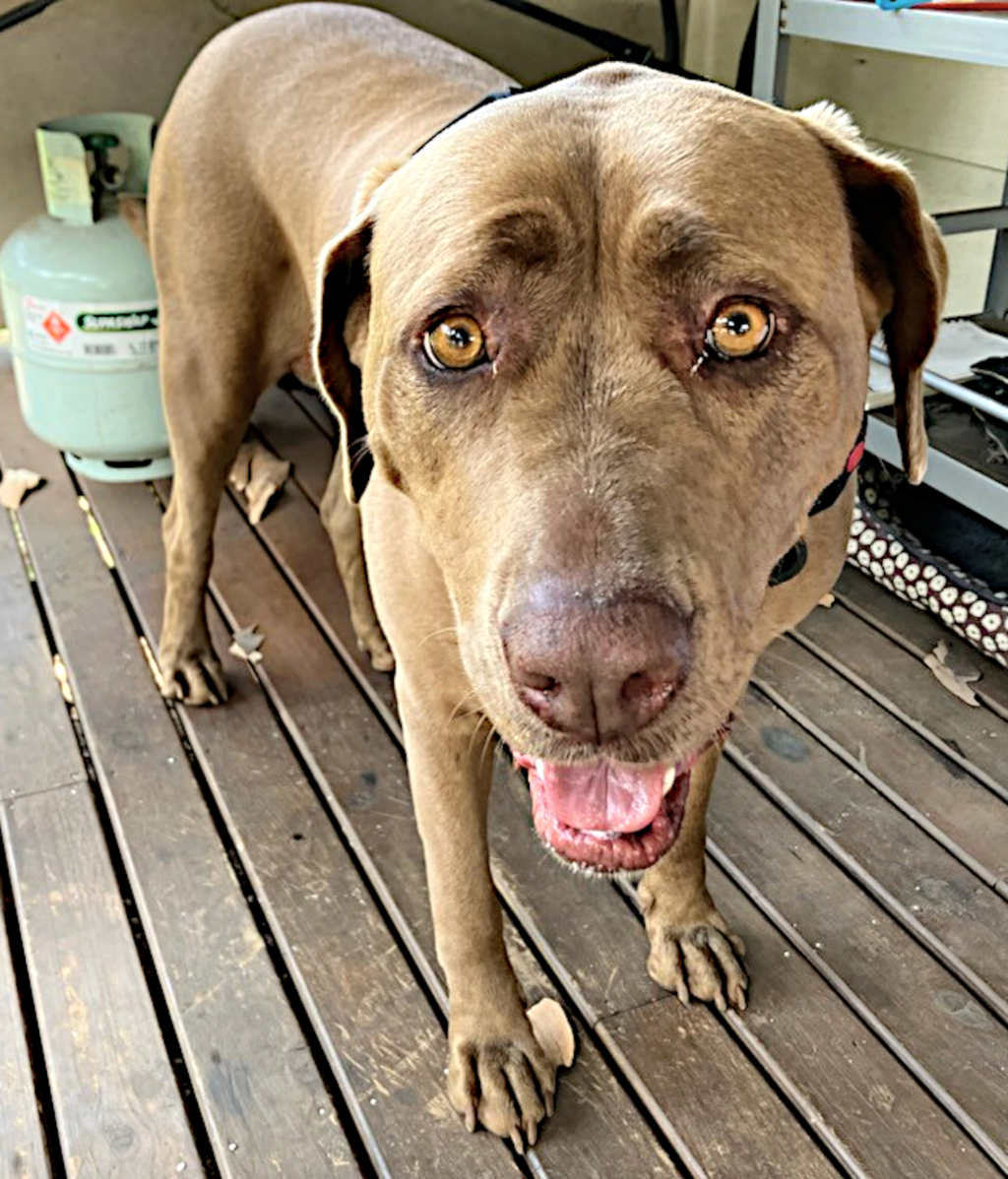 Bindi is a relaxed and loving family dog who lives outside but is well-behaved inside.