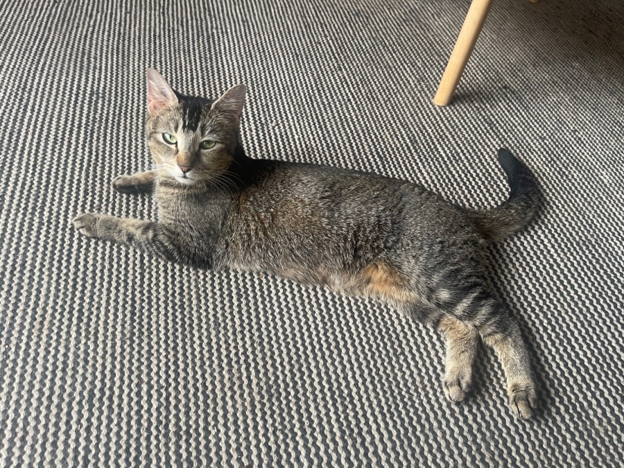 Bindy has a strong appreciation for the finer things in life, particularly her meals and the cozy comforts of being indoors. Although she enjoys a little outdoor time, you'll often find her lingering close to the house, eager to return to her favourite indoor spots. Whether lounging in a sunbeam or cozying up on the couch, Bindy knows how to make the indoors feel special.