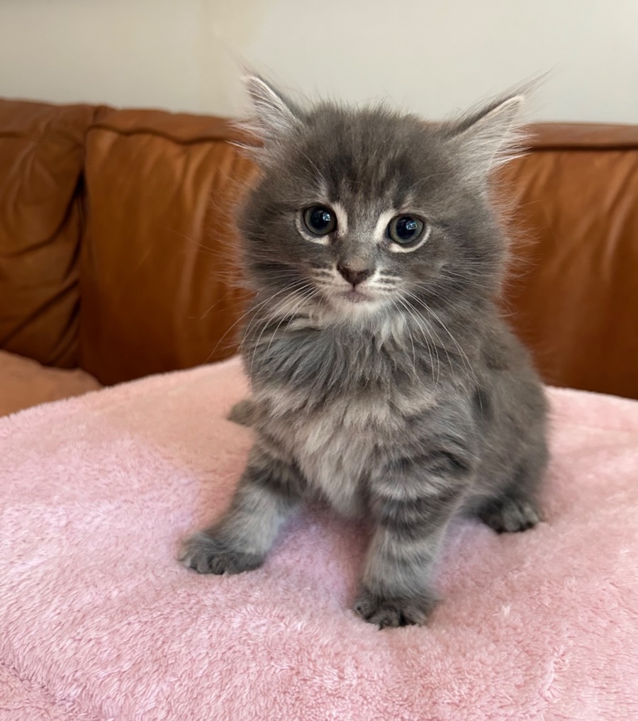 Harmony: The definition of cuteness, Harmony is possibly the fluffiest, most precious little kitten you’ll ever meet. With her soft, grey fur, gorgeous eyes, and adorable eye-liner, she’s practically irresistible! Harmony is playful, curious, and always ready to snuggle up with her mum. Watching these two bond as they explore, groom, and love each other is pure magic.