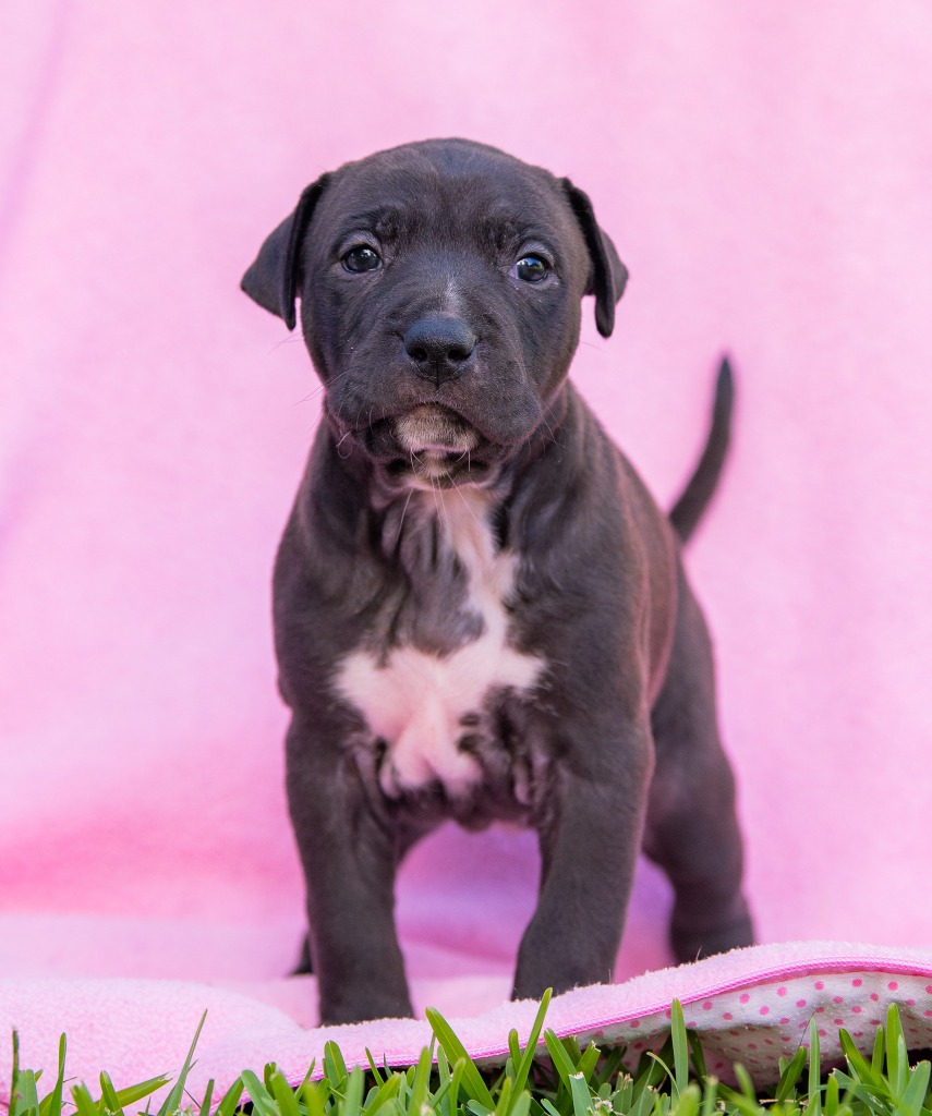 A sweet natured pup, searching for a family to love. A medium-large mixed breed, mum resembles a Staffy X, though her genetics are uncertain and the father's breed is unknown.