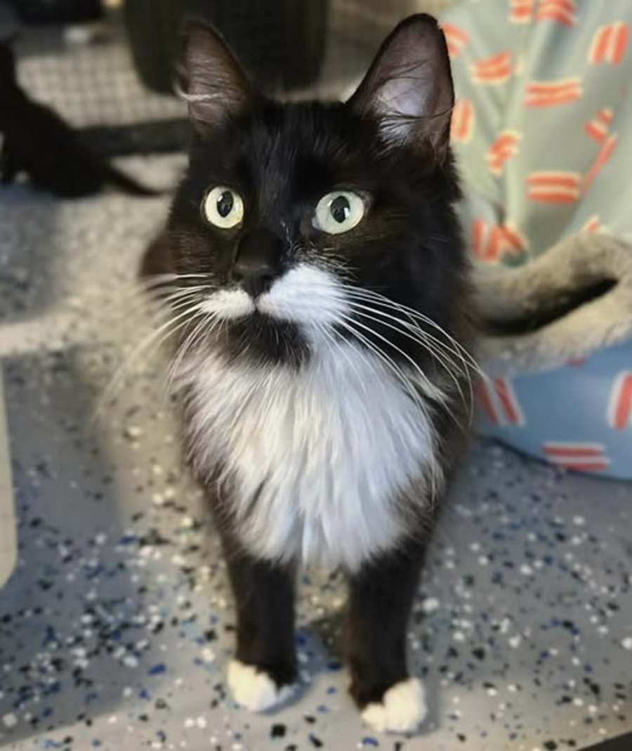 With her calm and easygoing disposition, Socks is a joy to have around. She is unbothered by much and showcases a harmonious spirit, making her a great companion for households with dogs, cats, and children alike. Socks finds contentment in life's simple pleasures, whether it's snuggling up for a cozy cuddle session on the couch or relishing a delicious meal. Her gentle purr and quiet, steadfast affection are sure to bring warmth and joy to your home.