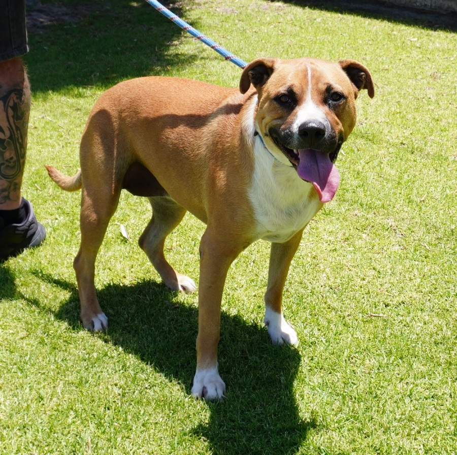Zoe is a beautiful 3-year-old Staffy mix with a tender heart and a gentle nature. Having spent her life with a loving older owner who is now battling dementia, Zoe is looking for a new home where she can feel safe and loved.
