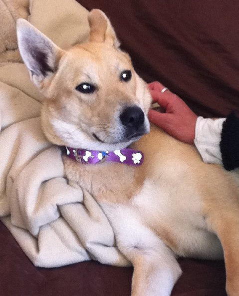 ** honey has found her forever home! ** honey is a real honey indeed - a beautiful, affectionate and clever girl who just loves your company. Around a year old, honey loves to play, so she would adore a home with another doggy pal her size to spend time with. Honey is good inside - loves to curl up with you on the couch at night and watch tv - and sleeps soundly in her basket all night. She seems fine around cats. Honey will make the most wonderful addition to an active family with another doggy pal