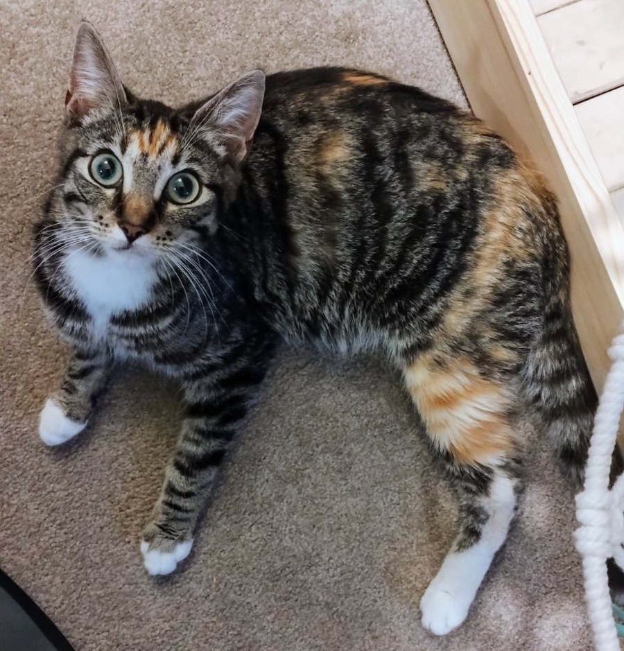 Minnie is a lovely 1-year-old tabby cat with a sweet and affectionate nature. She adores spending time with her human companions, whether it’s enjoying gentle pats, cozy cuddles, or simply being near you while you go about your day.