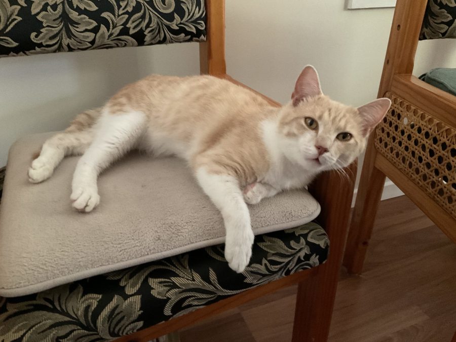 While he doesn’t enjoy being picked up, Reggie more than makes up for it with his love for snuggling up beside you for a pat or a cozy nap. His loyalty and charm will make you feel like the center of his world.