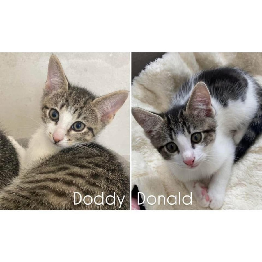 Doddy and Donald’s adoption fee includes vet check, sterilisation, vaccination*, microchip, flea and worm treatment.