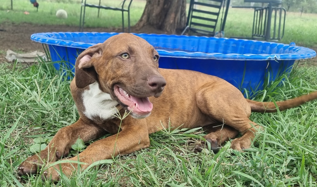 She enjoys being outside and running around playing with her brothers and sisters, cooling off under the shade of the tree or splashing about in the pool.