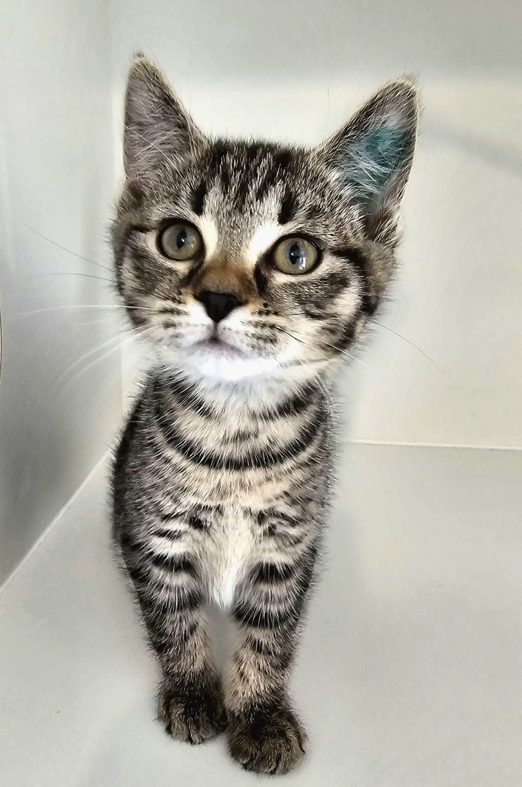 Meet Jayco! Jayco is a 9-week-old domestic short-haired tabby with a big personality and a love for adventure! Found abandoned and in need of a new home, this sweet and chatty little girl is now ready to find her forever family.
