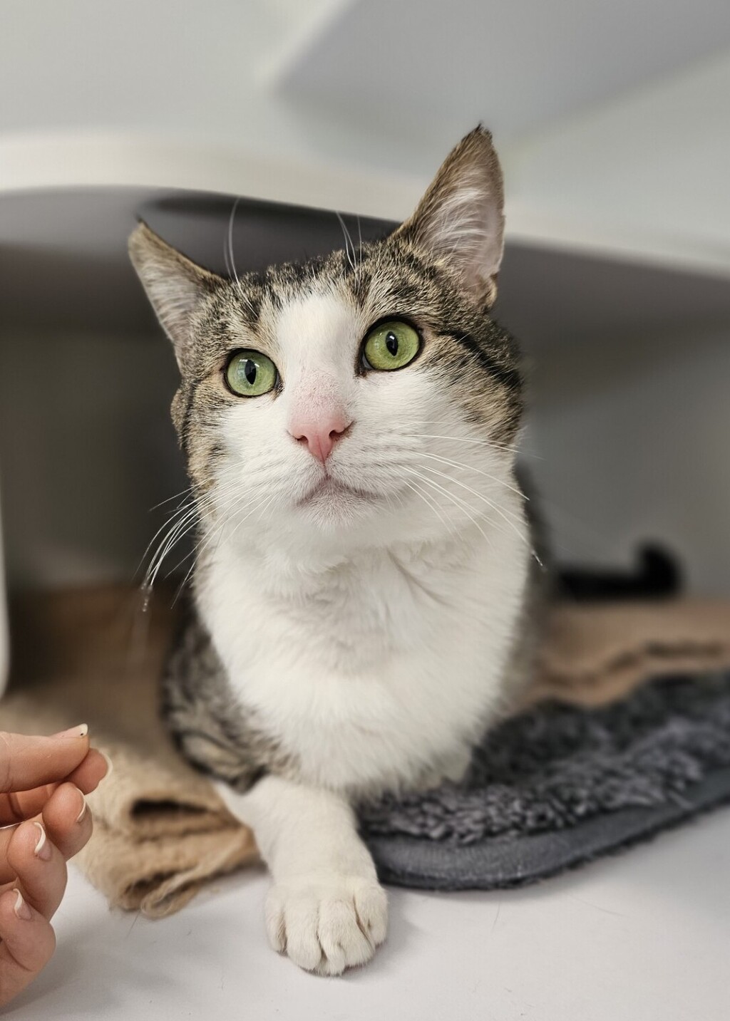 Uncle Toby does prefer the company of other cats over people, so a household with a friendly, confident cat could be the perfect fit for him. With ongoing training that pairs touch with treats, Uncle Toby will gradually become more comfortable with human interaction. He enjoys playtime and absolutely loves treats, which can be a great way to build trust and strengthen his bond with you.