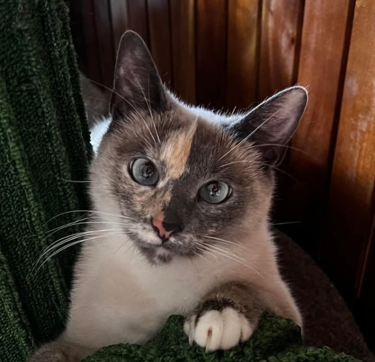 This stunning girl is a sweet and playful girl with a beautiful coat of cream and mottled grey fur. She’s got a unique little quirk – a small kink at the top of her tail – which just adds to her charm! Brunswick is as loving as she is playful, and she adores interacting with other cats. Her playful spirit and affectionate nature make her a joy to be around. Brunswick loves to jump up on the couch or your bed and snuggle in for a nap while purring loudly!