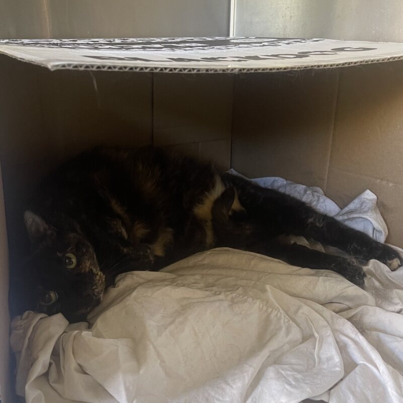 She came to us through no fault of her own and is now looking for her furever home. She will need a quiet home with no young children under 12. This is because she can be very shy and doesn't do well with loud noises. When she first goes to your home, you will need to let her have her own room to decompress and get used to the sounds and smells of your home. For this she will need a litter tray, comfy bed to call her own and a scratching pad. When you have given her time to settle and you feel that she is ready, she will then love to explore her new home. She does like nothing better than to jump up on the sofa and settle down near you while you watch telly in the evenings, and enjoys playing with string toys.