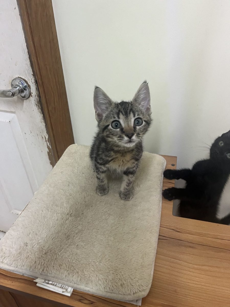 Ricky is a beautiful tabby boy with striking tabby swirls and a spotty tummy Ricky spends his days playing with his siblings on the cat tree and in the cat tunnel also sleeping in between he is a confident boy that loves his food isn’t fussy at all he has had his vet work done and is ready to fine his very iwn family