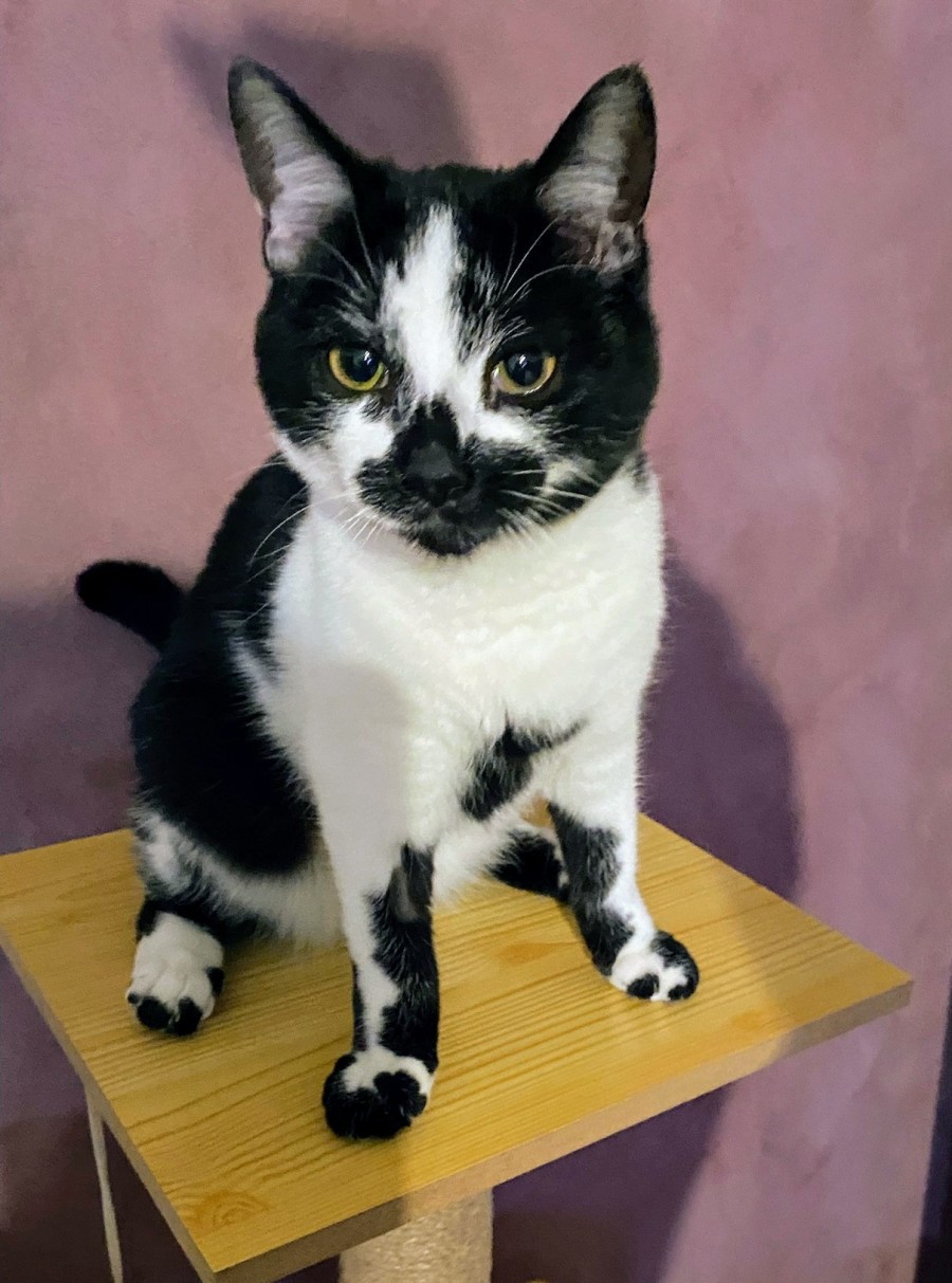 Dorothy truly thrives on human companionship, finding joy in the subtle moments of connection. She delights in playing games and sharing gentle cuddles. While she enjoys independent play, especially with Domino, she also revels in interactive games that involve her human friends. Whether it's chasing a dangling feather or curling up beside you for a quiet evening, Dorothy is always ready to share her day with a loving companion.