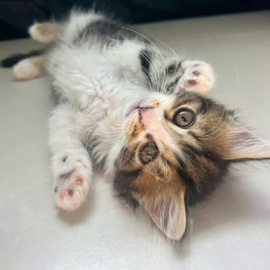 Iām a confident, friendly kitten who loves people and thrive on playtime. I love to chase my siblings around, wrestling them and doing zoomies on my cat wheel. When Iām sleepy from playing, I like to curl up for a cuddle or sprawl out for a nap in a nice sunny spot. Iād be the perfect companion for most families, I have the right balance of playful and affection!