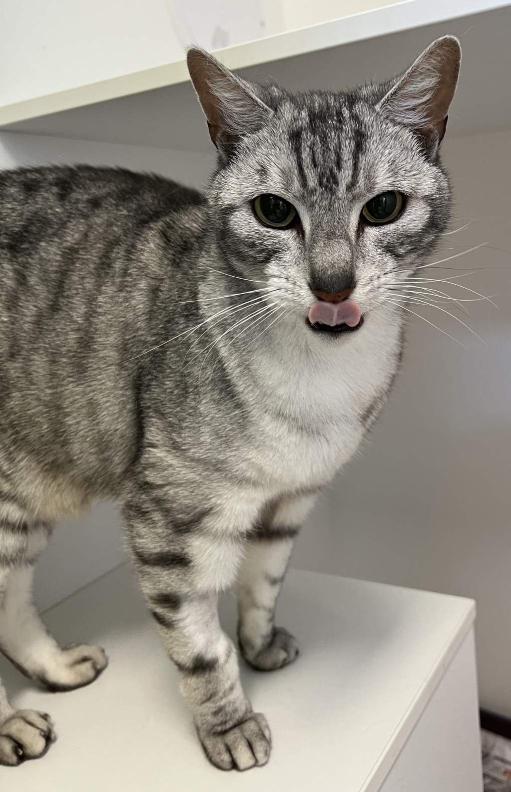 Lemo is one of a kind. With his beautiful coat pattern and his interesting voice he will definitely be a conversation starter. He is good with other cats but is a little shy with people so no small kids. He would a great companion for a single or couple. He likes his own space from time to time. He really is the sweetest guy. If you'd like to meet him we're open 7 days a week from 11.30am to 3.30pm.