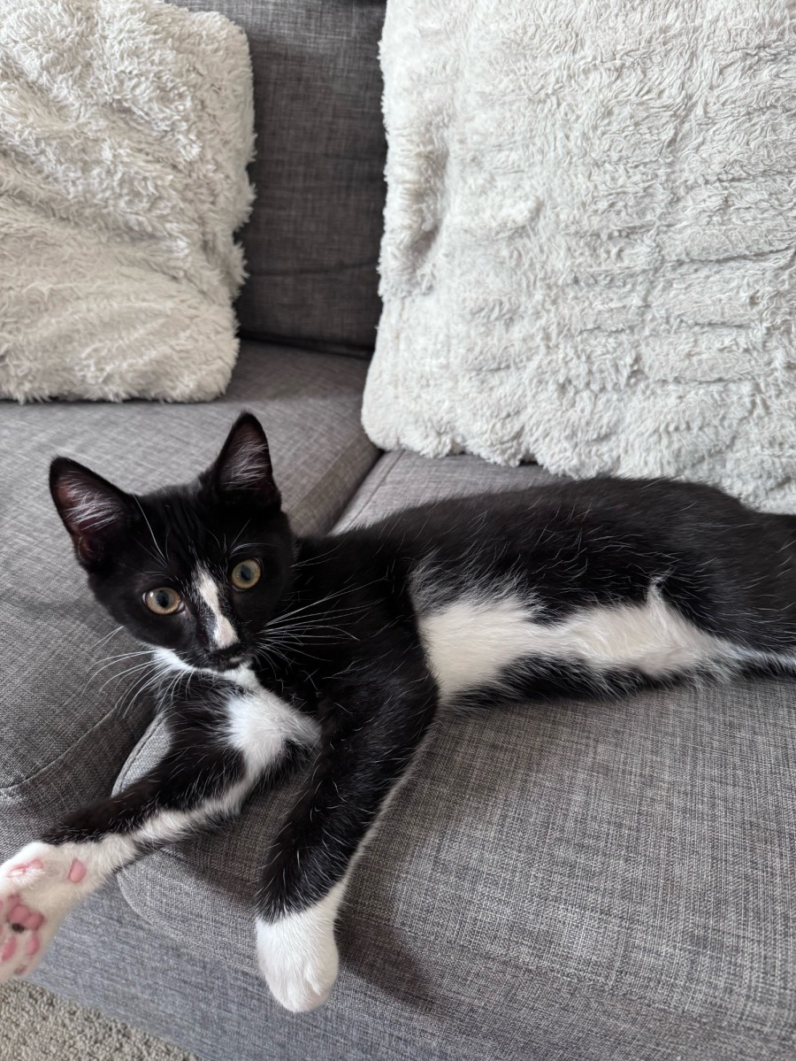 He’s a very active boy and absolutely loves attention and chasing his sister Elsa around the house when he’s not chasing his own tail. He’s an affectionate little guy and loves his belly being rubbed and will purr like crazy if you get the right spots (his neck and top of the tail)!