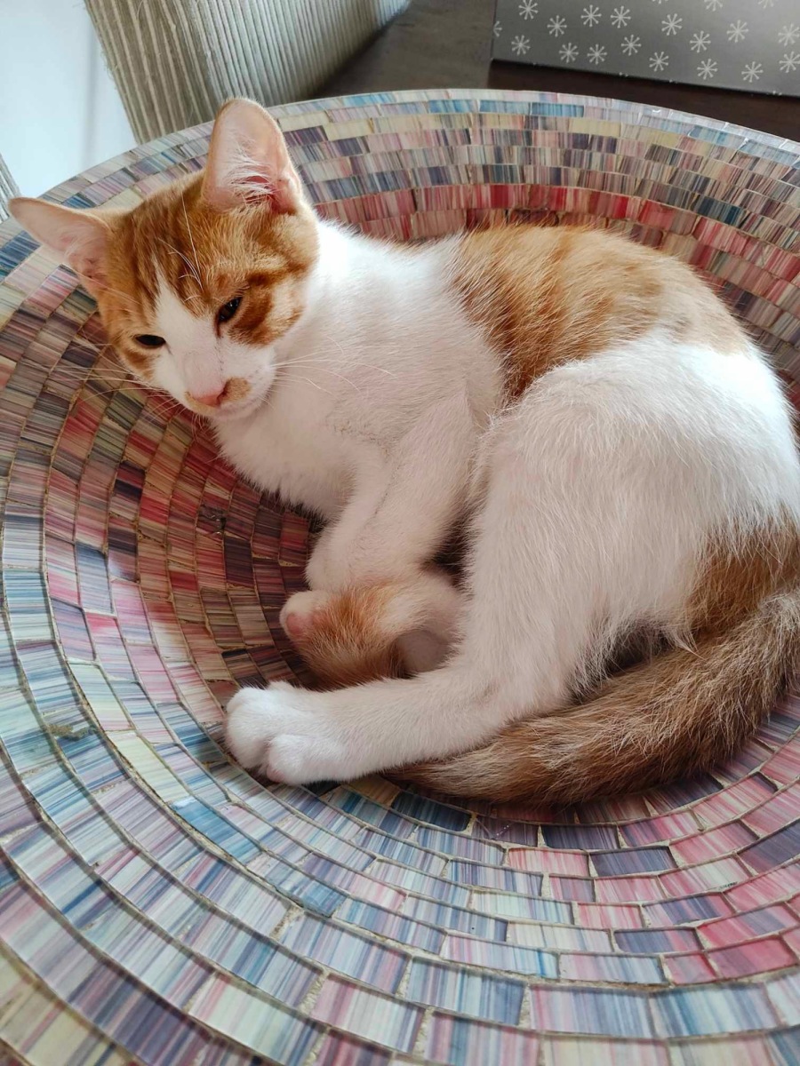 Lucas is an adorable little boy. He is adventurous and loves climbing and running. He loves his food and will chase a ball around the floor. He interacts well with other cats, is still a little frightened of dogs but is improving.