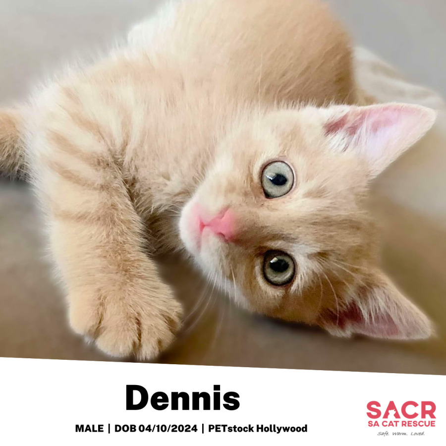 Meet Dennis, the charming feline rogue named after Dennis the Menace. His lively spirit and playful antics will have you entertained and smiling in no time. While he might initially come across as shy, don't be fooled—beneath that initial reserve is a mischievous soul burst with kitten energy and curiosity.