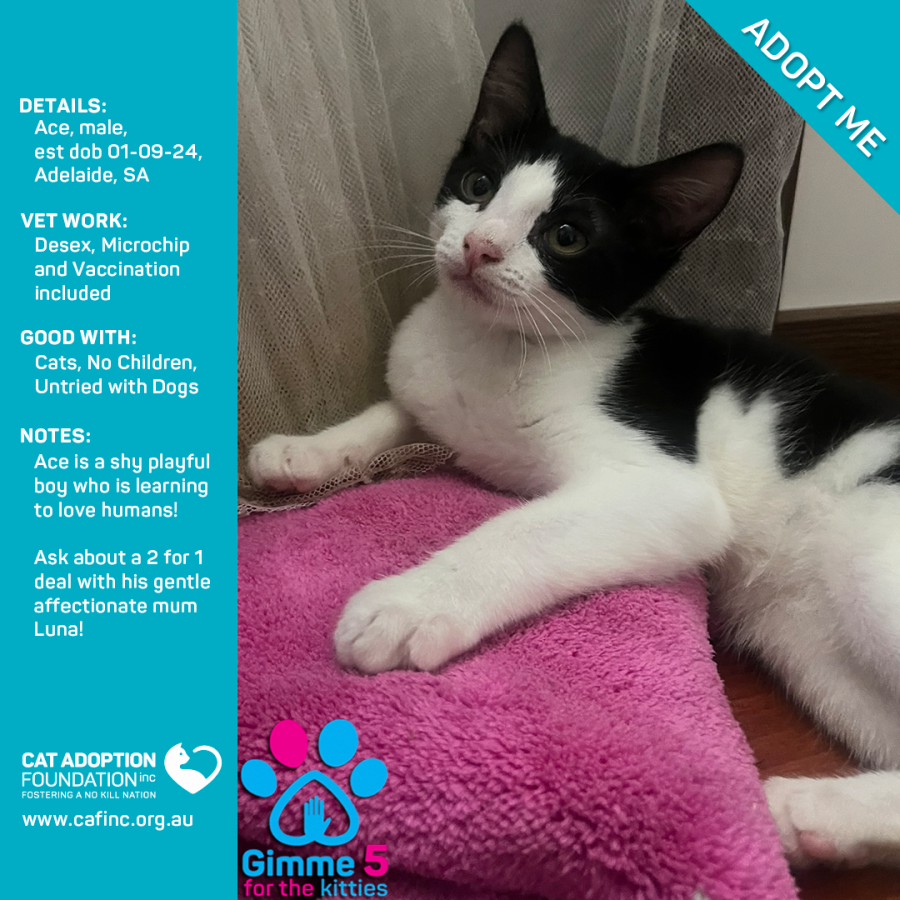 Donate to Ace at Cat Adoption Foundation Incorporated via Shout
