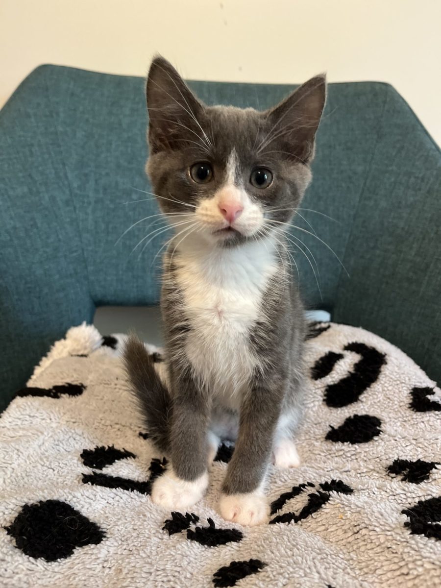 Nate is a charming grey and white kitten with a personality that will win you over in no time! He’s playful and curious, always following you around and exploring everything in sight. Nate loves curling up in your lap for some cozy snuggles and has a big heart for people—his main desire is all the love and attention he can get!