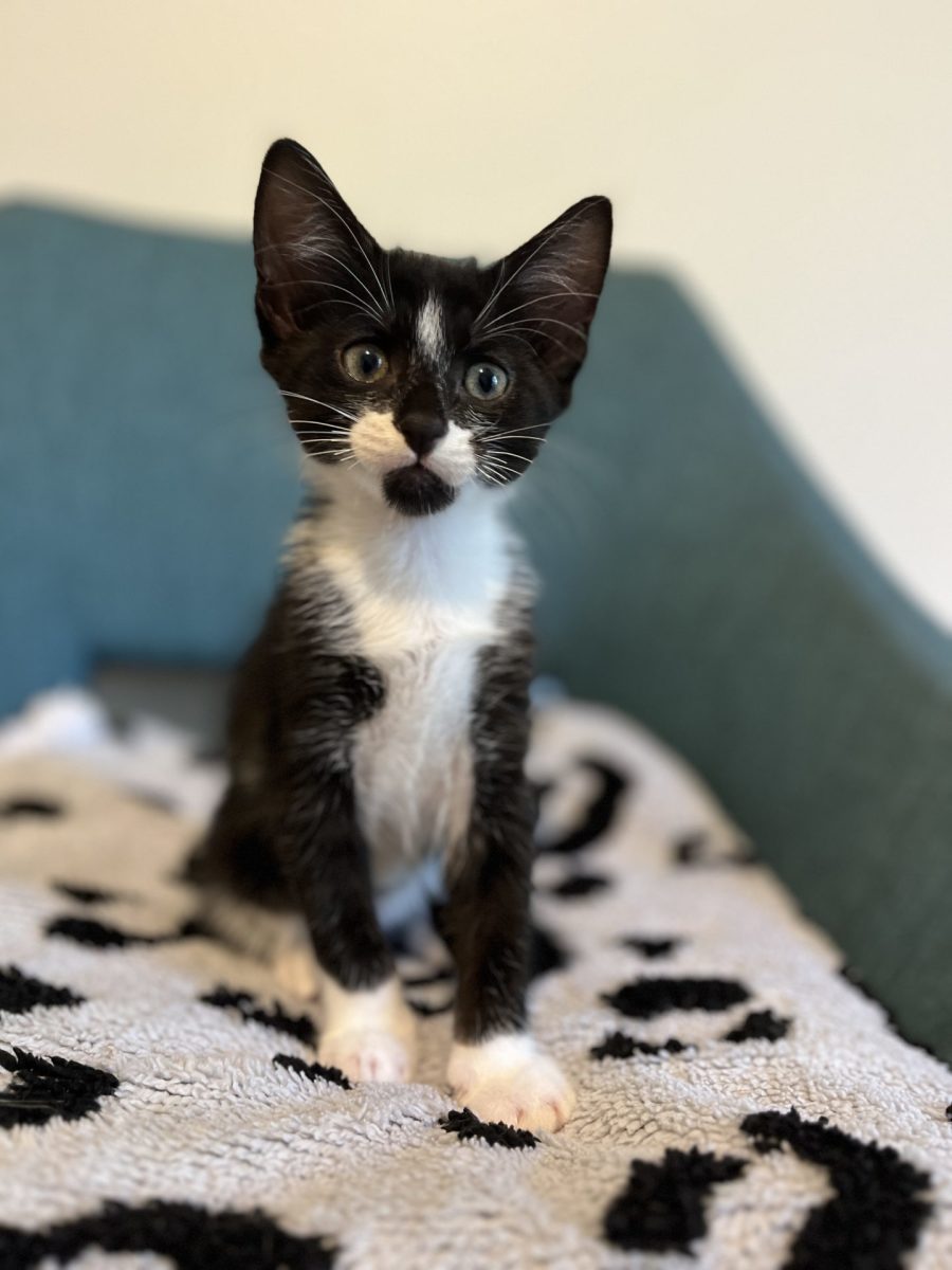 Rufus is a gorgeous black and white kitten with the cutest expressions! He will have you laughing with his playful antics. Rufus loves people and just wants to be around you. He would be a great addition to any family.