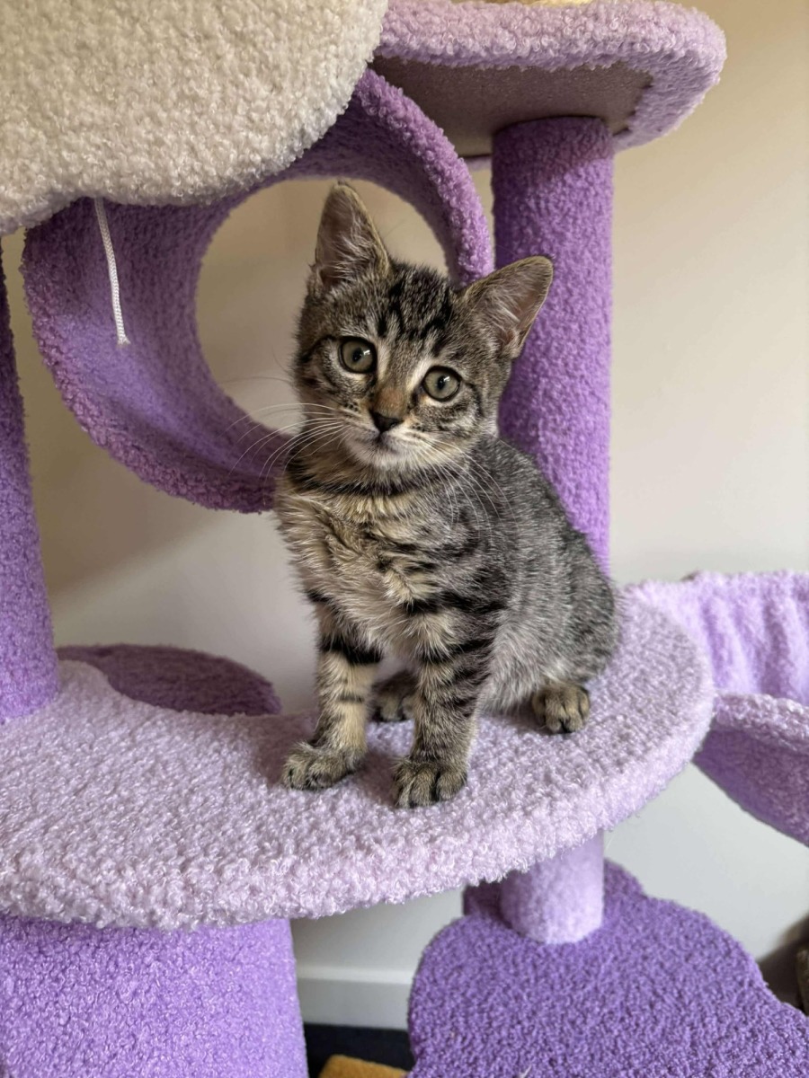 \Meet Velma, an adorable 10-week-old tabby kitten who is bound to capture your heart. With her big, bright eyes and dense tabby coat, she personifies kittenish charm and curiosity. Full of energy and playfulness, Velma is perpetually on the move, keen to explore every nook and cranny she can find.